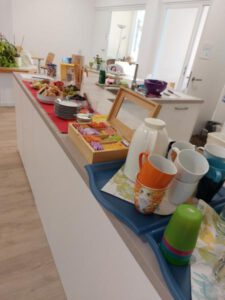 - Kühlschrank, Herd, Backofen, Wasserkocher, Kaffeemaschine, Kaffee-Pad-Maschine, Thermoskannen (KEINE Mikrowelle)