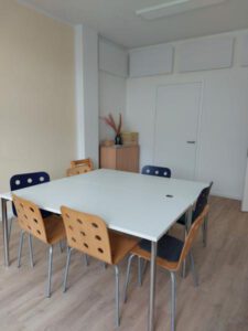 Dieser Raum hat eine Größe von ca. 22 qm und eignet sich für bis zu 8 Personen. Er ist mit 2 Tischen und 8 Stühlen ausgestattet. Zusätzlich gibt es an der Wand ein großes Whiteboard.