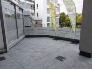 Er bietet Platz für 3 Tische mit jeweils 6 Stühlen, also bis zu 18 Personen.