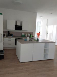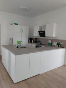 - Kühlschrank, Herd, Backofen, Wasserkocher, Kaffeemaschine, Kaffee-Pad-Maschine, Thermoskannen (KEINE Mikrowelle)