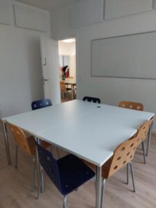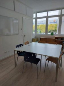 Dieser Raum hat eine Größe von ca. 22 qm und eignet sich für bis zu 8 Personen. Er ist mit 2 Tischen und 8 Stühlen ausgestattet. Zusätzlich gibt es an der Wand ein großes Whiteboard.